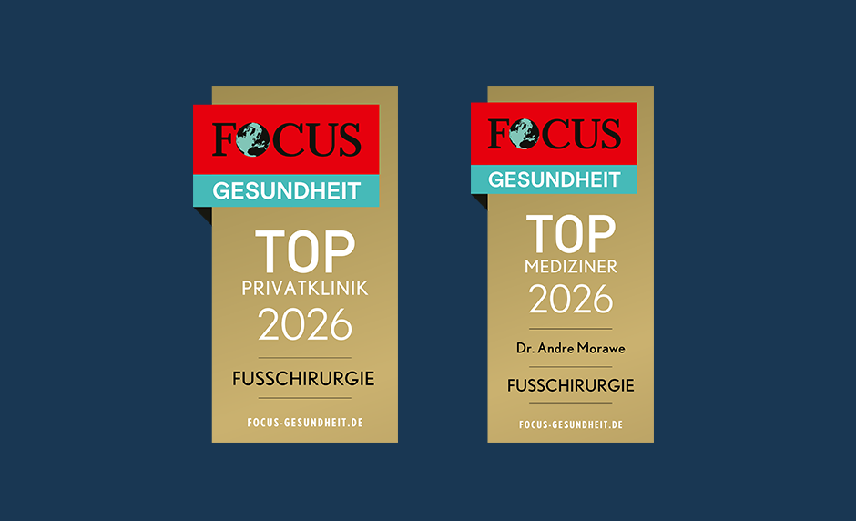 Dr. André Morawe ist zum wiederholten Mal als Top Mediziner Fußchirurgie 2026 und seine Abteilung als Top Privatklinik Fußchirurgie von der Focus Redaktion ausgezeichnet worden.